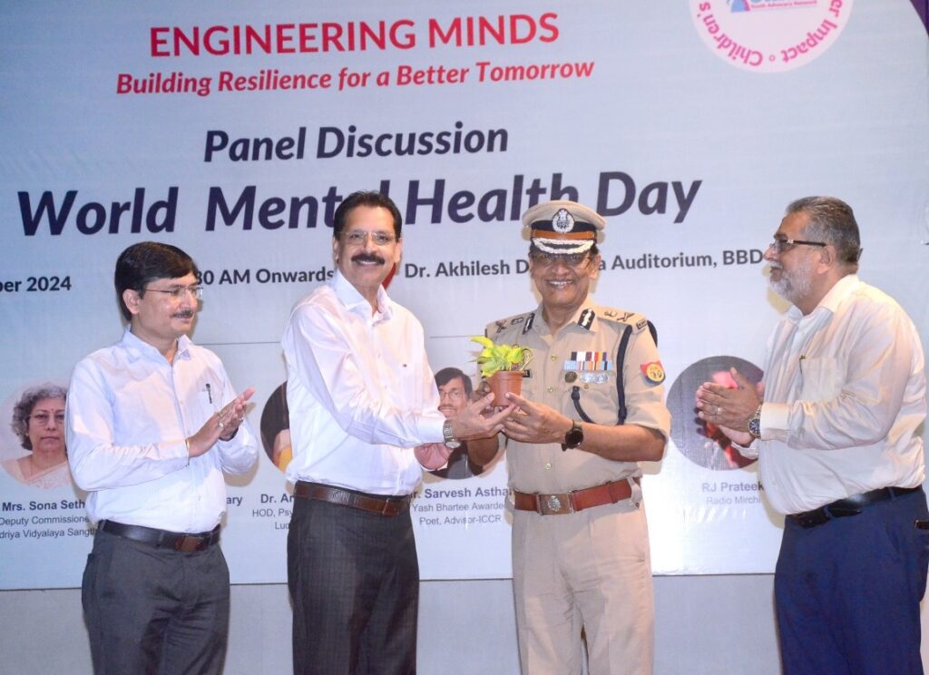 लखनऊरू स्कूल ऑफ इंजीनियरिंग, बाबू बनारसी दास विश्वविद्यालय द्वारा 10 अक्टूबर को वल्र्ड मेंटल हेल्थ डे पर पैनल डिस्कशन का आयोजन किया गया। यह कार्यक्रम बीबीडी गु्रप की चेयरपर्सन श्रीमती अलका दास गुप्ता और प्रेसिडेंट विराज सागर दास के मार्ग दर्शन और प्रेरणा से आयोजित हुआ। यह आयोजन चाबी यान प्रोजेक्ट के सहयोग से किया गया। कार्यक्रम का शुभारम्भ बाबू बनारसी दास विश्वविद्यालय के प्रो. वाईस चांसलर प्रो. डॉ. एस सी. शर्मा द्वारा आमंत्रित अतिथिओं के स्वागत से किया गया।