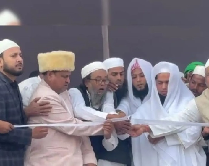 मौलवियों के साथ रिबन काटकर मस्जिद का निर्माण कराया प्रारंभ