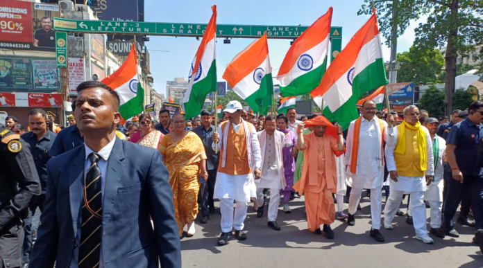 संवाददाता, लखनऊ। लोकसभा में महिला आरक्षण बिल पास न होने पर मंगलवार को राजधानी में भाजपा ने जन आक्रोश रैली निकाली। रैली का नेतृत्व सीएम योगी ने किया। इस पदयात्रा में उनके साथ हजारों महिलाएं चल रही थीं। सीएम योगी तेज धूप में सड़कों पर उतरे। धूप से बचने के लिए भगवा रंग का गमछा पहना। रैली में उनके साथ डिप्टी सीएम बृजेश पाठक और केशव प्रसाद मौर्य, बीजेपी अध्यक्ष पंकज चौधरी और सुभासपा लीडर ओपी राजभर भी मौजूद रहे।