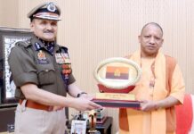 पुलिस झंडा दिवस पर डीजीपी डीएस चौहान ने सीएम योगी को लगाया फ्लैग पिन