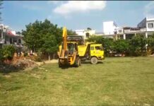सेक्टर एन-1 में पार्क की सफाई के लिये लगी नगर निगम की टीम