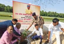 मंत्री धर्मवीर प्रजापति के जन्मदिन पर होमगार्ड मुख्यालय पर हुआ वृक्षारोपण